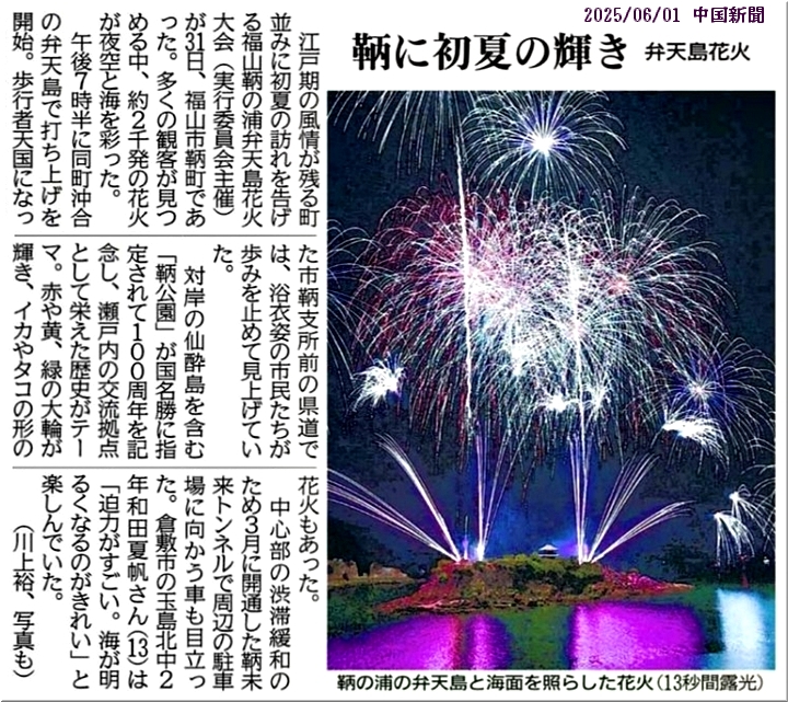 5/31(土)の夜は、夏の訪れを告げます鞆の浦弁天島花火大会≠ナしたネ(^.-)☆