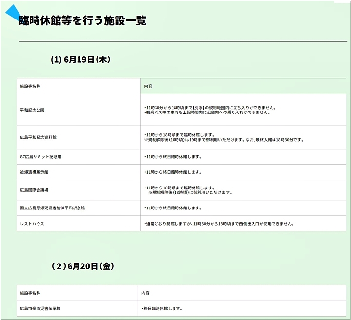 で、広島県のホームページを覗いてみますと、同じ「交通規制のお知らせ」が有りましたけど、ふ〜ん、天皇皇后両陛下による平和記念公園訪問≠ノ伴う交通規制でありましたか(^.-)☆