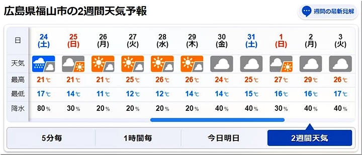 福山市の2週間天気予報を見てみますと、どぅにか明日は開催出来そうであります(^_^)v