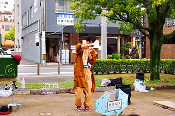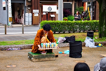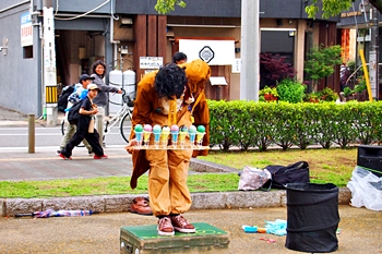 中央公園南口にと戻って来ますと、ソランポ・ソラン≠フお二人のパフォーマンスに人の輪が(^_^)v
