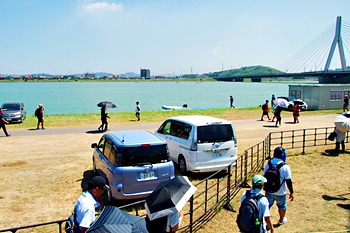 まぁそぅでしょうネ、炎天下で河川敷におりますと、「アホか、お前達は!!」と思われますかも(^-^)