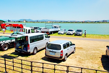夕方近くとは言え、まだまだキツい日差しの下で大勢の方々が忙しそうでありました。この様子を画像に撮りたい気持ちですけど、ジャマしてもイケませんから帰路で撮ります事に。