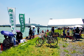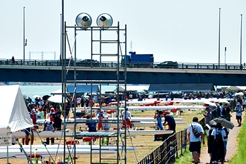 警備関係者の方が設営されました河川敷を見て廻っておられます。