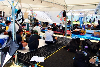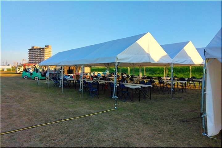 熱中症対策なのでしょうネ、テント下、テント周辺には結構な数の大型扇風機。うん、うん、これでしたら、出場選手・関係者の皆様も快適な環境の中での実施となります事でしょうねぇ〜