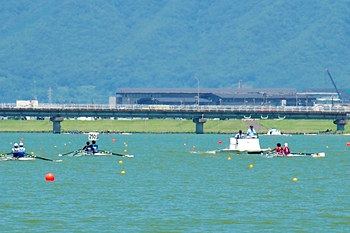 ローイング競技は、スタートからフィニッシュまで、艇がいかに速くたどり着くかを競うシンプルな競技ですが、実は奥が深く、魅力、見どころも多くあります。まずは鏡のように静かで穏やかな水面を滑るように進むスピード感。人間の力だけでこんなに速く進むのかと驚かされる速さです。また、自然の中で競技する心地よさや開放感は見ている人にも伝わってきます。そして2人以上の種目では一糸乱れぬチームワークが魅力で、全員が完全にシンクロした統一感は圧巻の光景です。