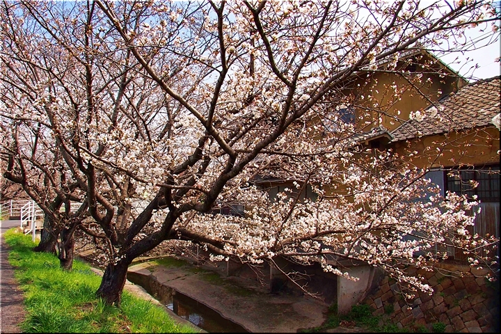 3/31(月)の昼食時、「集会所裏の水呑川土手のサクラ並木、豊年橋北側のサクラは満開だった…」と嫁さん。