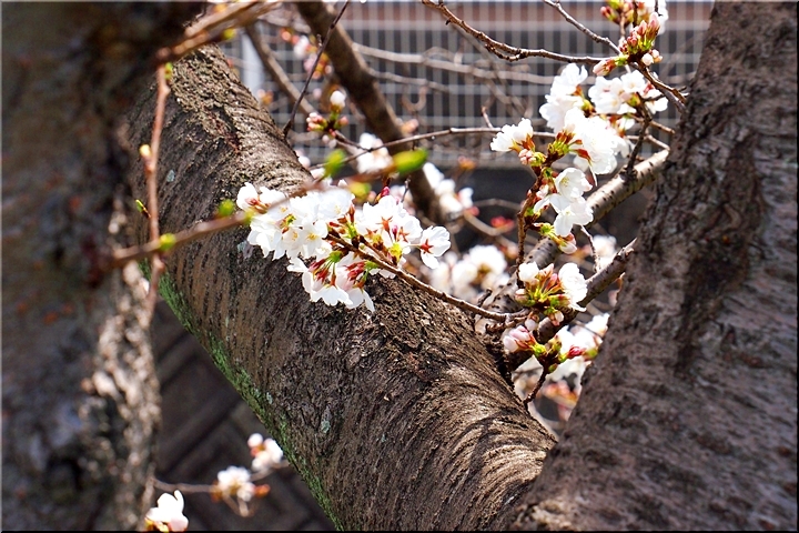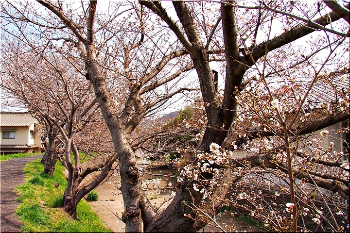 せっかくの水呑川土手サクラ並木の散策ですから、ついでに、豊年橋以南も見てみましょうか…毎年の事ですけど、予期しました通り、南側はサッパリ。満開となりますのは、来週半ば辺りとなりますでしょうか…