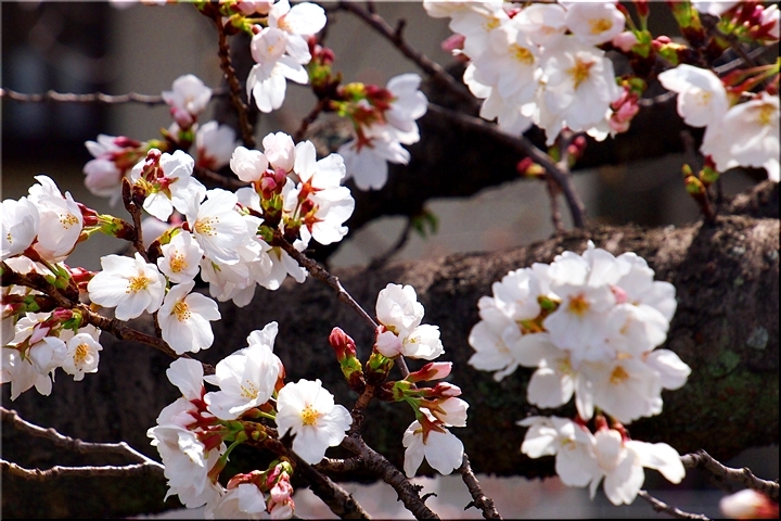 近付きまして、部分的にサクラの花に眼を向けますと、これもまたキレイではあります。