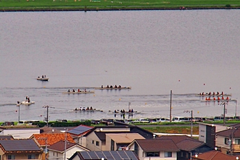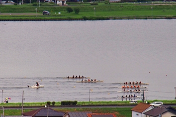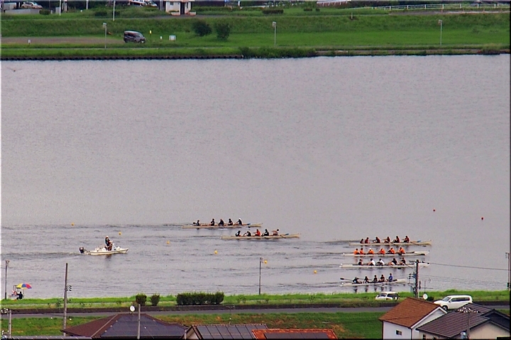 う〜ん、わずか300mのコースでありましても、力の差は歴然と…スタートしますと、アッと言う間に差が開きます。どのチームも日頃からキツい練習をしておられるのでしょうけど、ローイングの競技も仲々厳しいものですネ(^-^)//"
