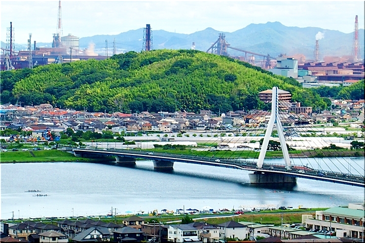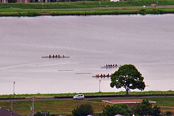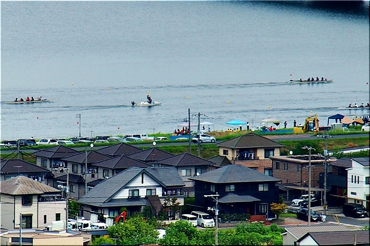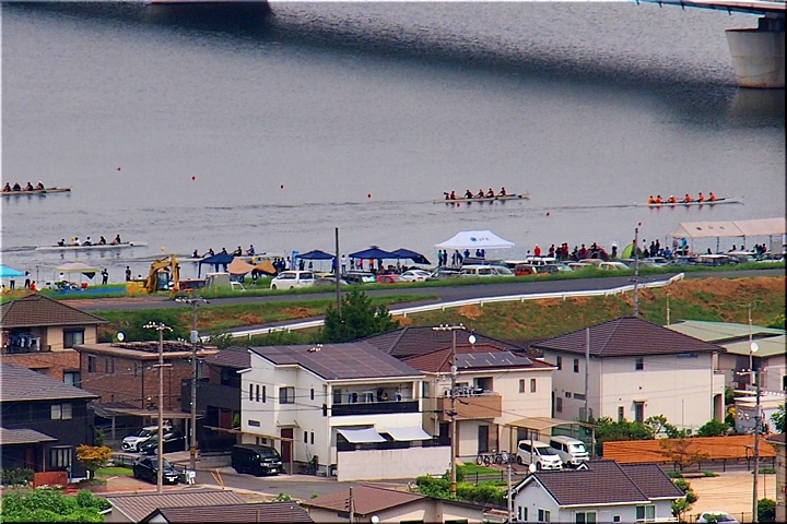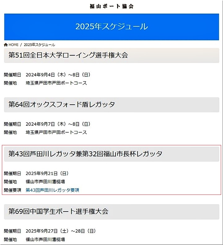 凡て終わりますと、我が町を眺望しながら暫し一服ですけど、芦田川川面では何の大会か分かりませんけどレガッタの開催中。スマホで福山ボート協会2025年スケジュール≠検索してみますと、ふ〜ん、「第43回芦田川レガッタ兼第32回福山市長杯レガッタ」の開催のようであります。