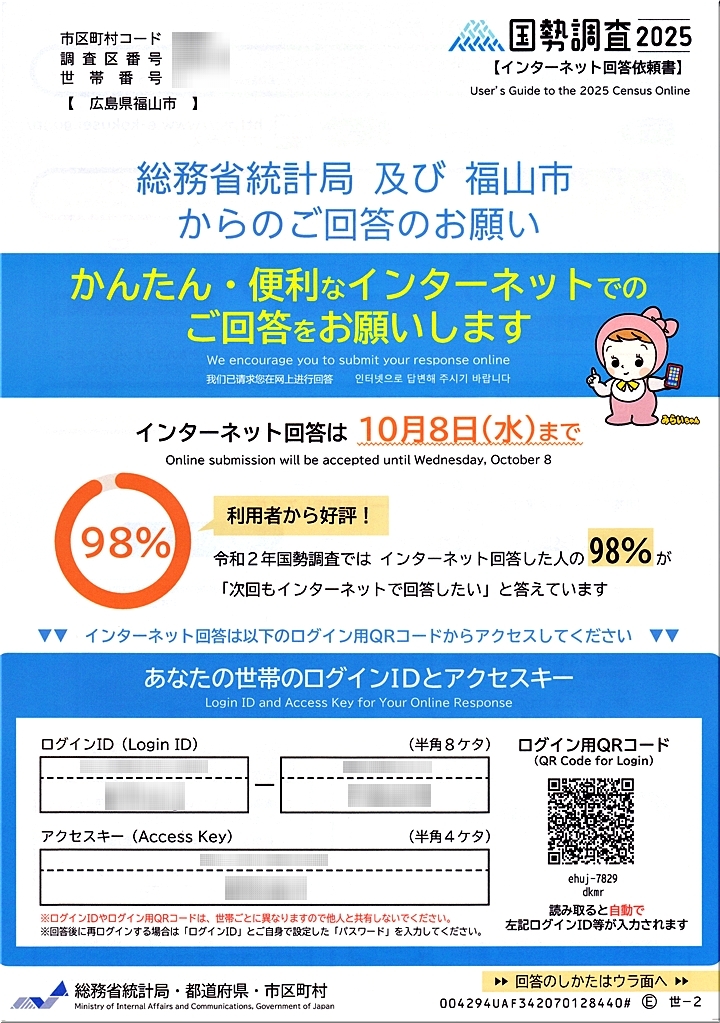 ところで、嫁さんは今回も国勢調査の調査員を依頼されましたか…確か今回で3回目となりますのでしょうけど…