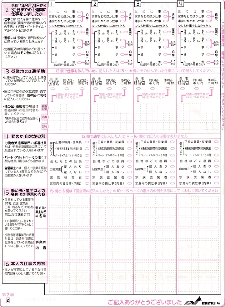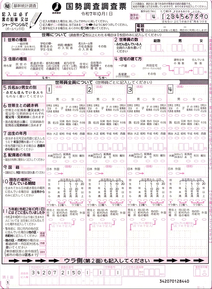 まぁ、このような事はさて置きまして、前回の2020年の国勢調査、そして今回と、またまた嫁さんは調査員に選任されましたようですねぇ〜