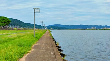 芦田川土手に、1本のみ存在します樹木辺りからのスタートですから、コース距離は300mなんでしょうネ。