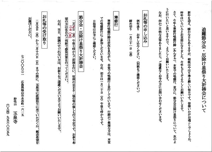| 2025/02/02(日) 玉泉寺追儺節分会・厄除け星祭り |