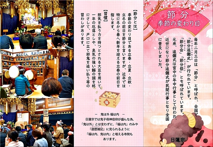 節分の日に厄払いを行い、1年の幸せを願う節分追儺法要=Bこの一年もまた幸せな日々が過ごせましたら宜しいですネ。是非、そぅありたいものであります(^-^)//"