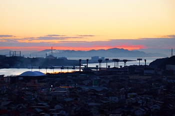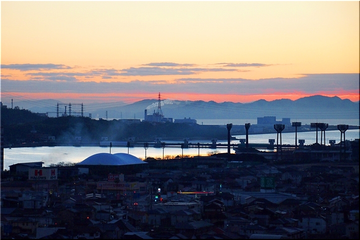 例年、初日の出は、07:13頃ですから、未だユックリ出来ますけど、向かいましたのは白萩団地の市営住宅。この敷地内から我が町を見渡せますから、ここから初日の出を捉えようかと(^-^)