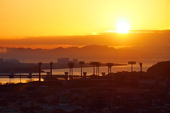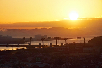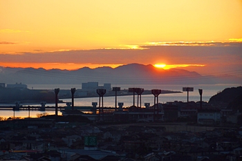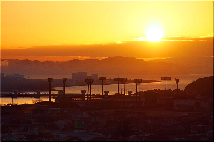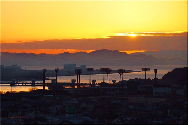 暫く待機しておりますと、空がオレンジ色に輝いてきましたから、ソロソロですネ。初日の出が顔を覗かせましたのは、A.M.07:06でありました(^.-)☆