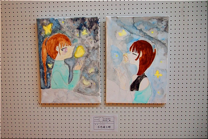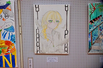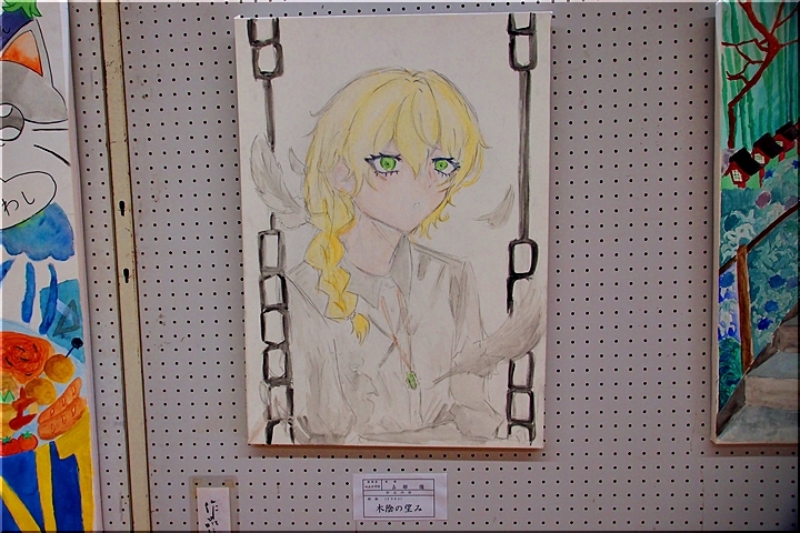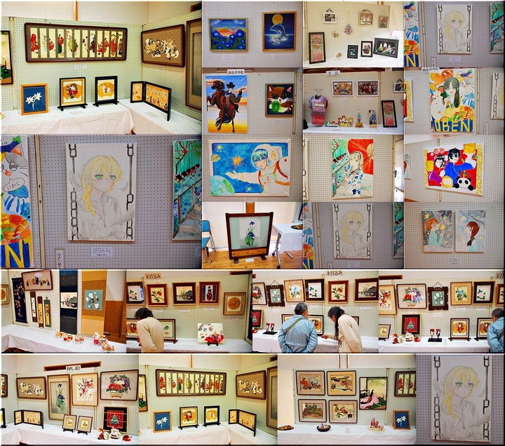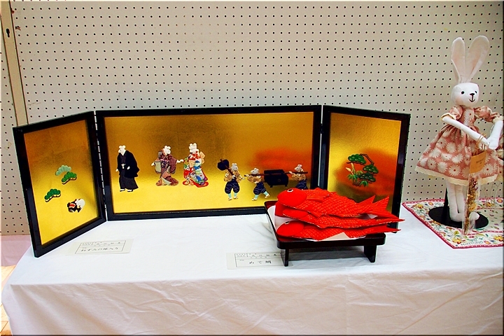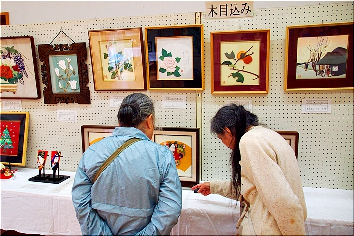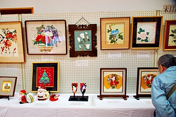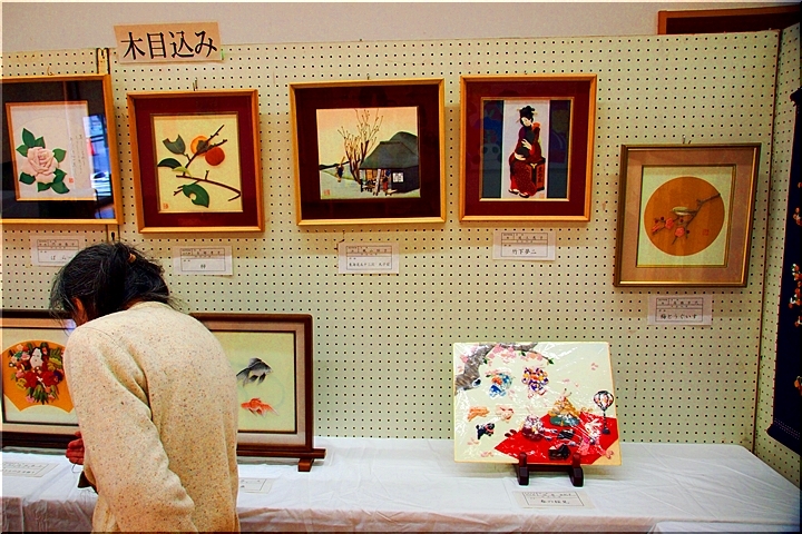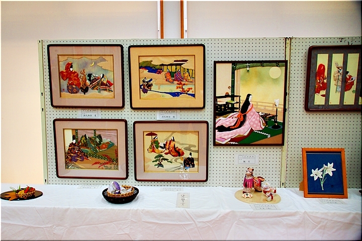 向丘中・美術部の皆さんの作品に続いては、手芸∞木目込み∞押し絵≠フ作品の展示ですけど、いずれも皆、手が込んで大変キレイな作品です(^_^)v