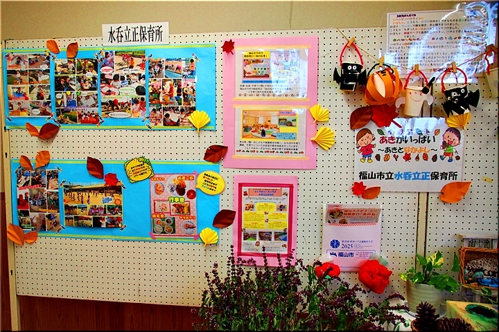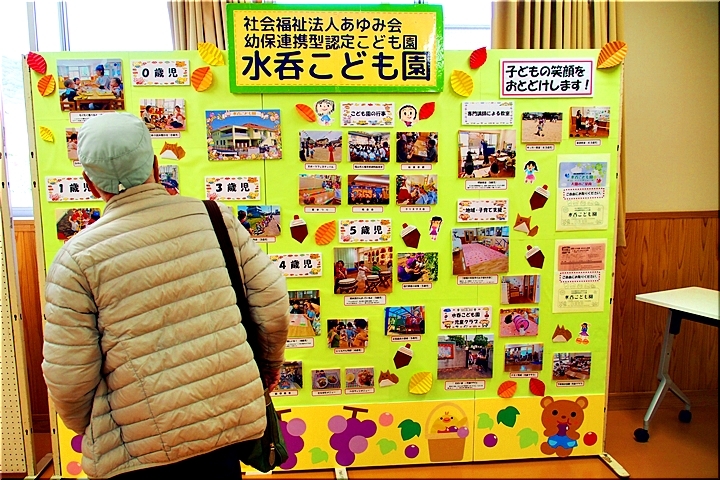 この部屋には、水呑立正保育所∞水呑こども園≠紹介します作品の展示もありました。