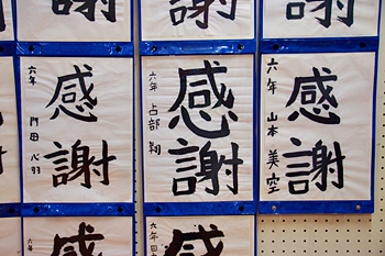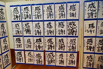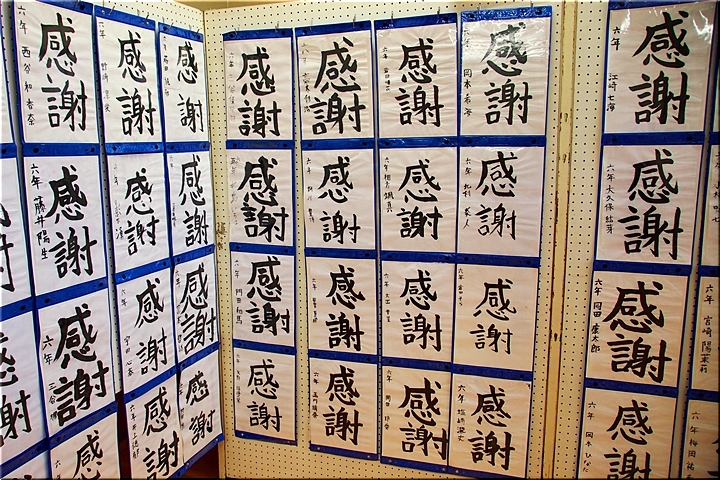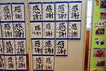 皆さん、画数の多い「感謝」を綴っておりましたけど、画数が多いだけに仲々バランス良く書けませんようですネ。でも、どれも力強く書いておられます。