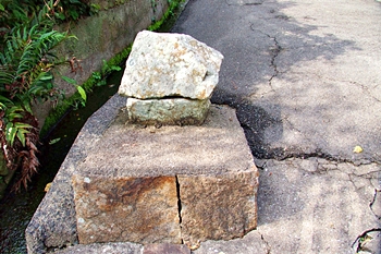 40センチ位の自然石を積み重ねたもので、線香の灰を疣(いぼ)に付けると、疣がなくなると云われている。今でも賽銭が上がっています。