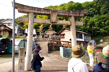 松室神社≠ナは、境内には上がらず石段下の鳥居から説明をされます本日のガイドsan。