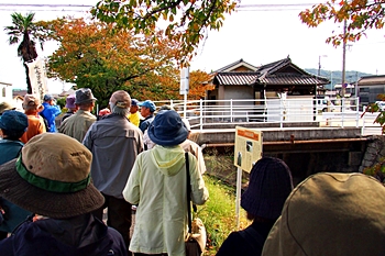 松尾(松室)神社∞松室川≠フ説明が終わりますと、今回の史跡巡り≠ヘ凡てオシマイです。後は、水呑交流館に戻るのみ。