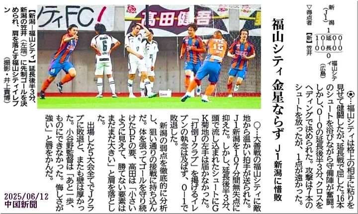 中国サッカーリーグでは、今季、これまで引き分けを挟み5連勝≠フ福山シティFC。まだまだ先は長いのですけど、中国サッカーリーグ制覇で、念願のJFL昇格≠ノ弾みを付けて貰いたいモノであります(^-^)/