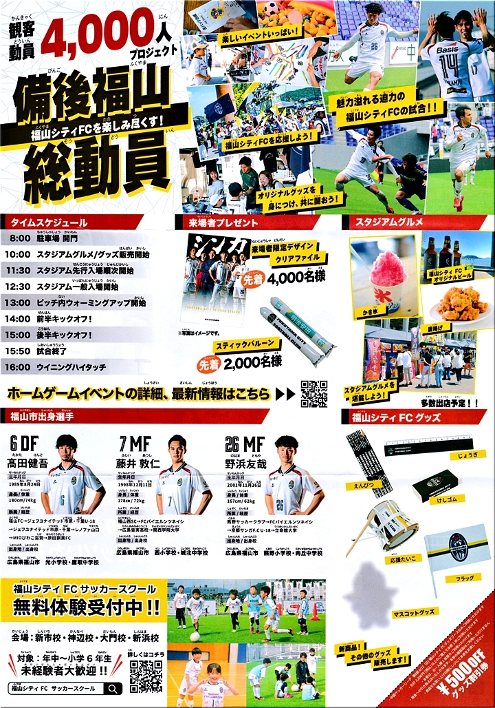 福山シティFCは、これまで以上に地域に根ざし、次世代を育て、“備後・福山にとってなくてはならないクラブ”を目指して、選手・スタッフ一同、全身全霊で取り組んでまいります。