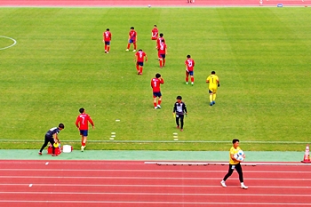 選手が着用のユニフォームと言うかジャージの白い方が福山シティFC≠ナ、赤い方がベルガロッソいわみ≠フチームです。中国サッカーリーグで、ここまで5連勝の福山シティ。この日の勝利で6連勝≠祈りたいですネ(^-^)//"