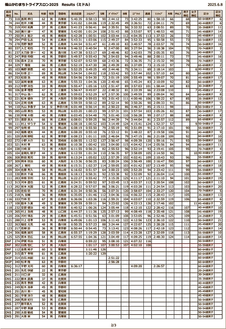 総合順位に「DNF」の記載ですから、頑張っておられましたのに途中棄権≠ニは、実にお気の毒。