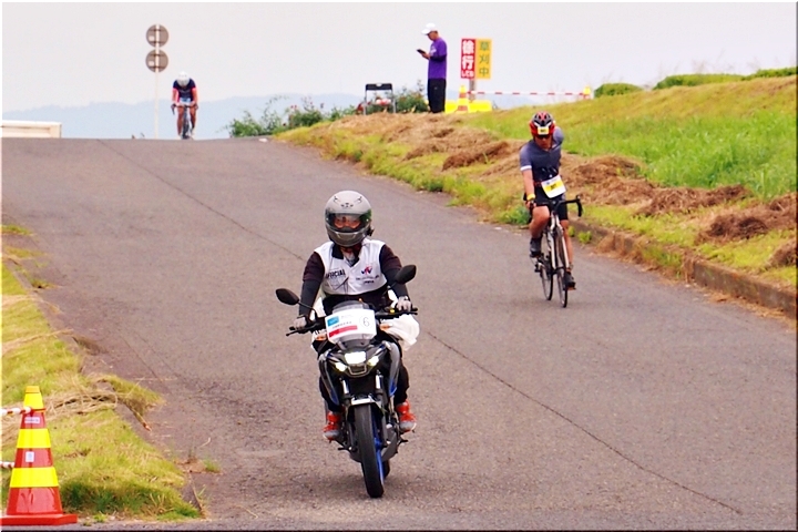 バイクが追走していますスグ前の選手が、多分、トップか最後尾の選手なのかも…
