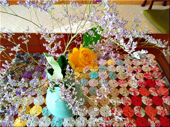 一輪のバラは、嫁さんに早速生けて貰いましたけど、一輪の黄色のバラ…大変キレイであります。でも、一輪挿しの方がシンプルで良かったような…いぇいぇ、下手な事を言いますと嫁さんの機嫌を損ないそうですから、何にも言わずに一枚パチリとなりました(^_^)v