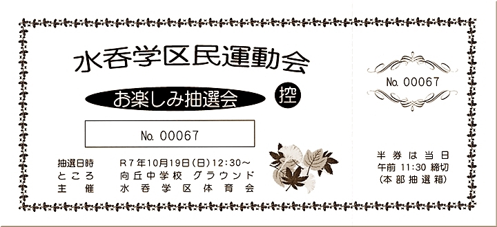回覧では、学区民運動会のお楽しみ抽選券≠ェ各戸1枚配布ですから、今回は2桁の「00067」を選択です。今まで一度も当たった事がありませんから、今回も期待薄(^-^)