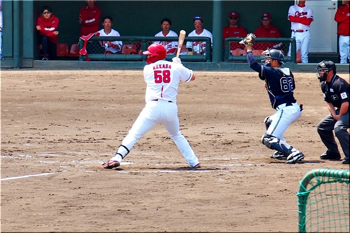 オリックス2×0カープ≠ニ、2点リードで迎えました2回表のオリックス。横山聖・河野・堀の3選手とも凡打・三振で追加点ならず。開始早々2失点の杉田健投手も、立ち直って来ましたようですネ(^.-)☆